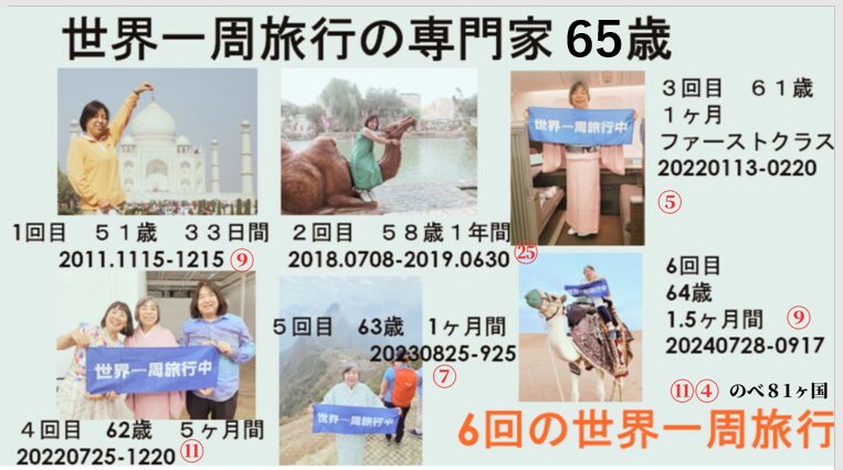 私は、英語もお金も体力も自信がなかった50代から世界一周を始め、65歳の今までに6回も地球を回ってきました。