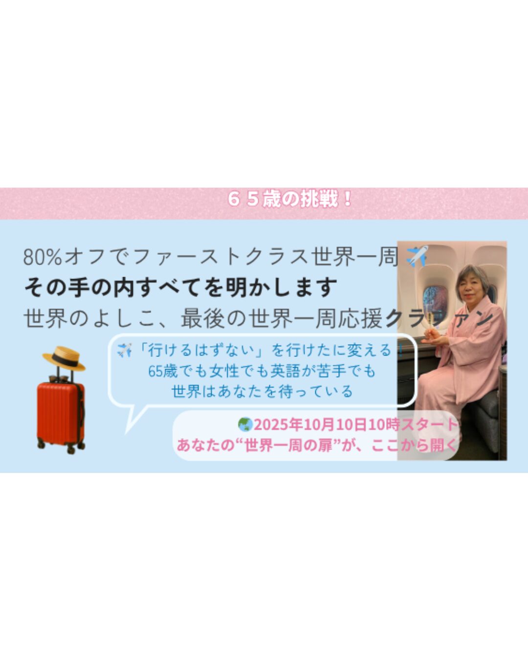 今回、世界一周航空券の販売が終わるまでの“最後のチャンス”が迫っています。この知識を「これ以上、損をしたくない」あなたに伝え、夢を現実に変えるための「一生使える旅と人生のスキル」を届けるため、このクラファンでの挑戦を決意しました。